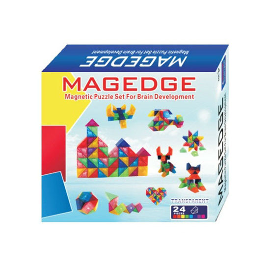 This magnetic puzzle features pieces in triangular shapes and assorted colors. Children can make different animals, trees and houses as they like with the magnetic pieces. The puzzle game promotes children's brain development.
