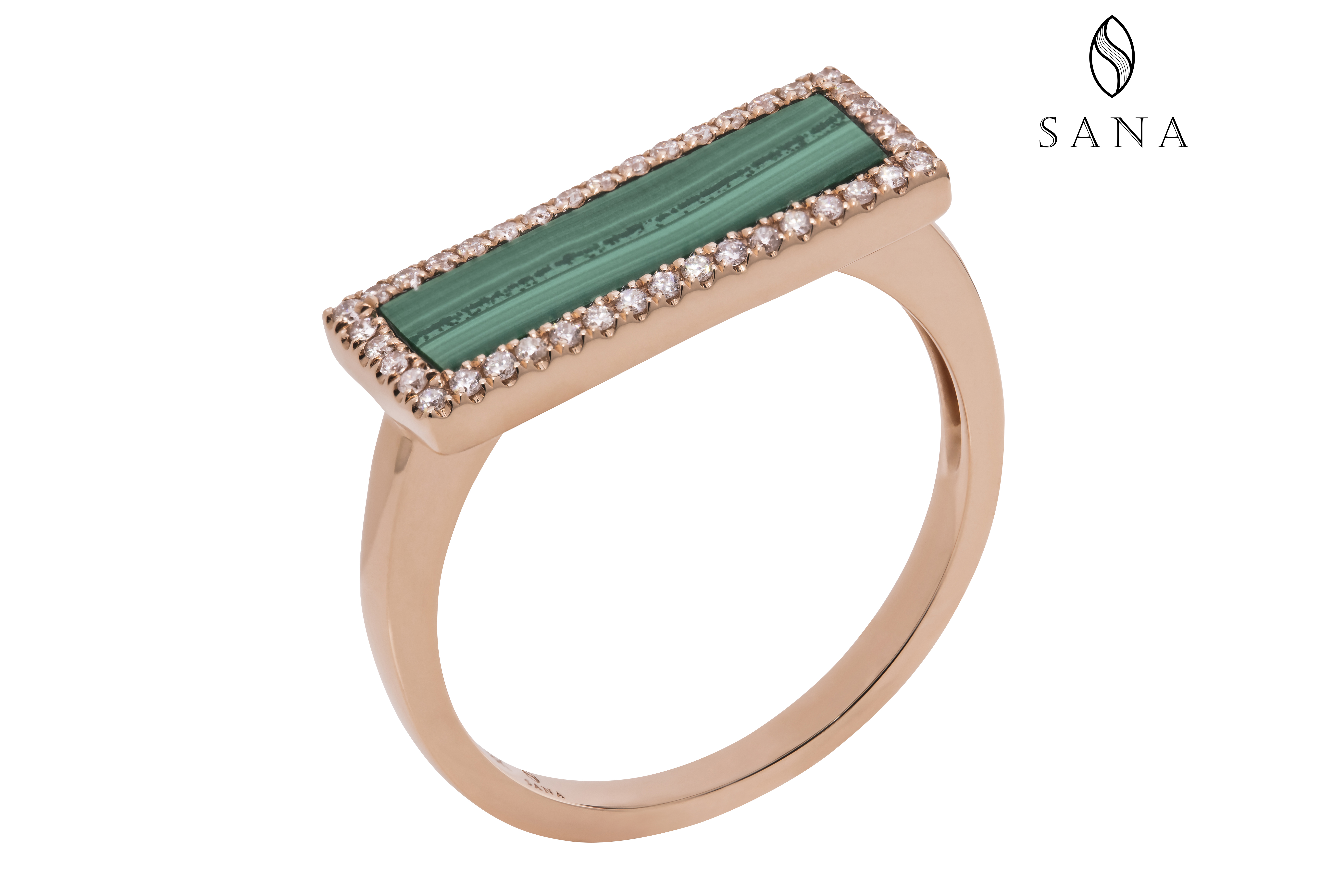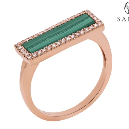 18K Rose Gold With Diamond and Malachite Ring