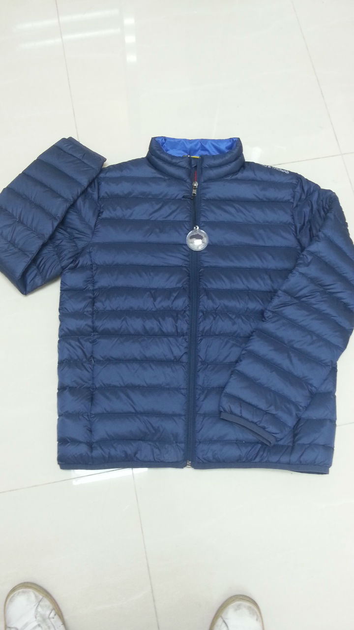 Man's jacket with soft padding hand feel like down proof.