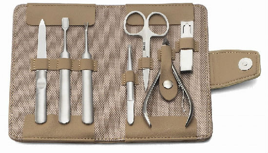 - With nail clippers, 2 cuticle trimmers, nail filer, cuticle nipper, scissors and tweezers.