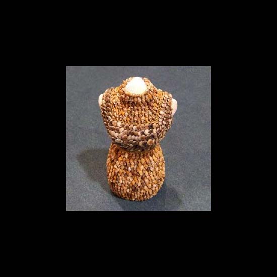 - A tank top dress made of natural sea shells is worn by the mannequin