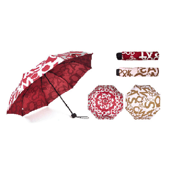 The manual open umbrella is crafted with and accented by allover stylish text. It is integrated with a rugged frame to withstand strong winds. The umbrella protects you from rain while allowing you to stay in style.