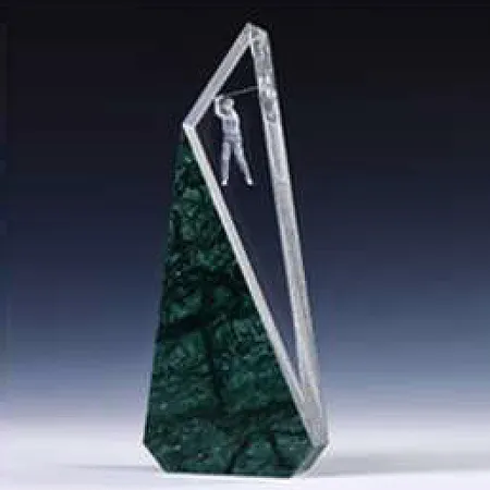 This unique freestanding award features beautiful green marble.Size:240x85x30mm