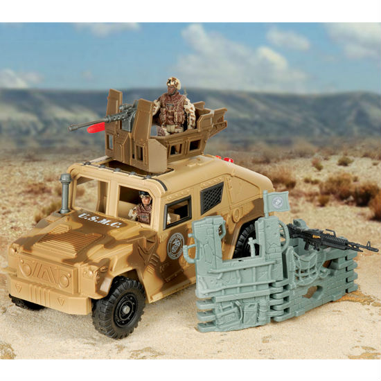 Assault vehicle included with heavy machine gun, realistic camouflage patterns, rubber tires and more.