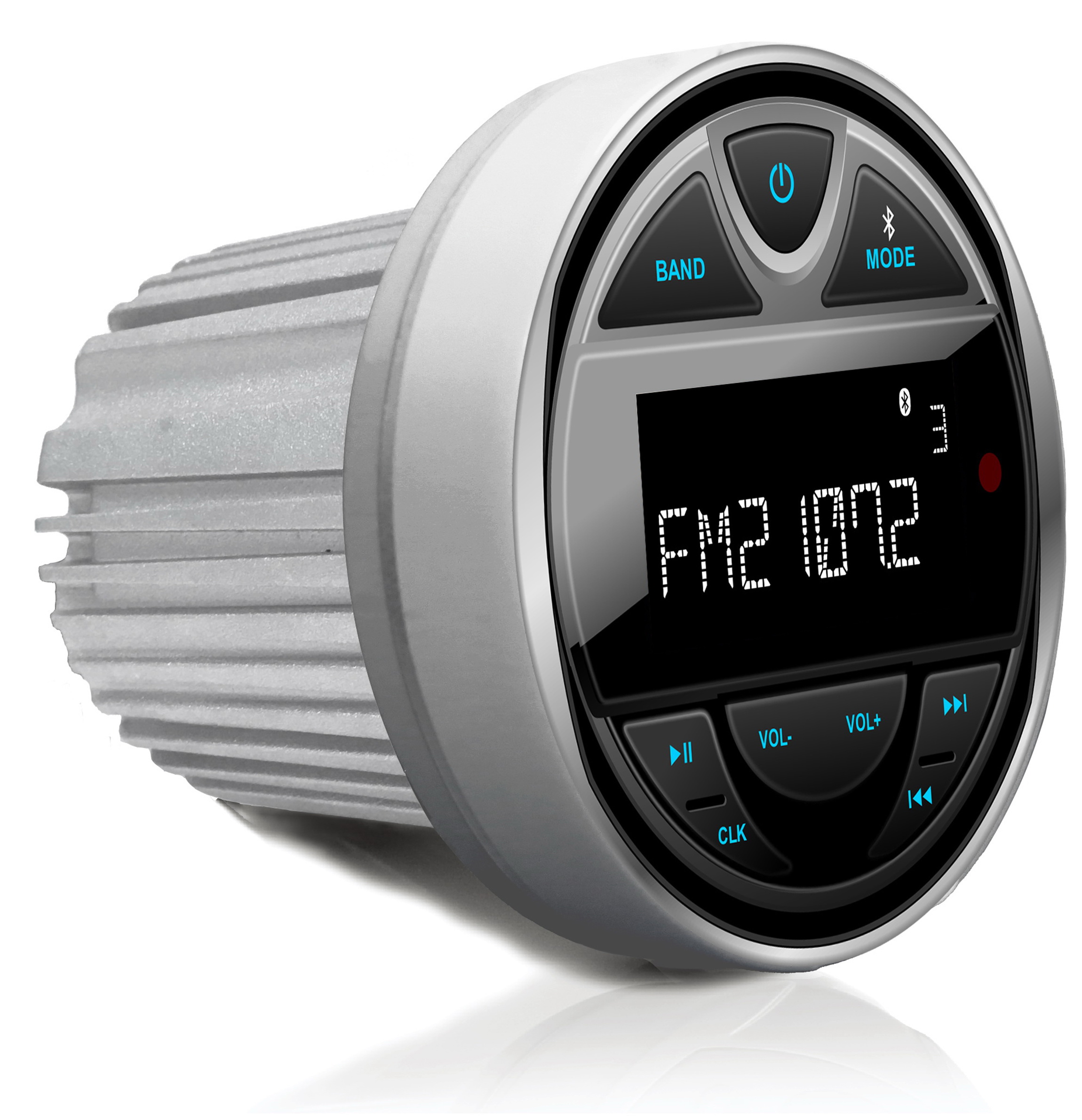 Marine Stereo, Round Gauge, IP 67, MP3, AM/FM Radio, Molex Plug, LCD display, Bluetooth