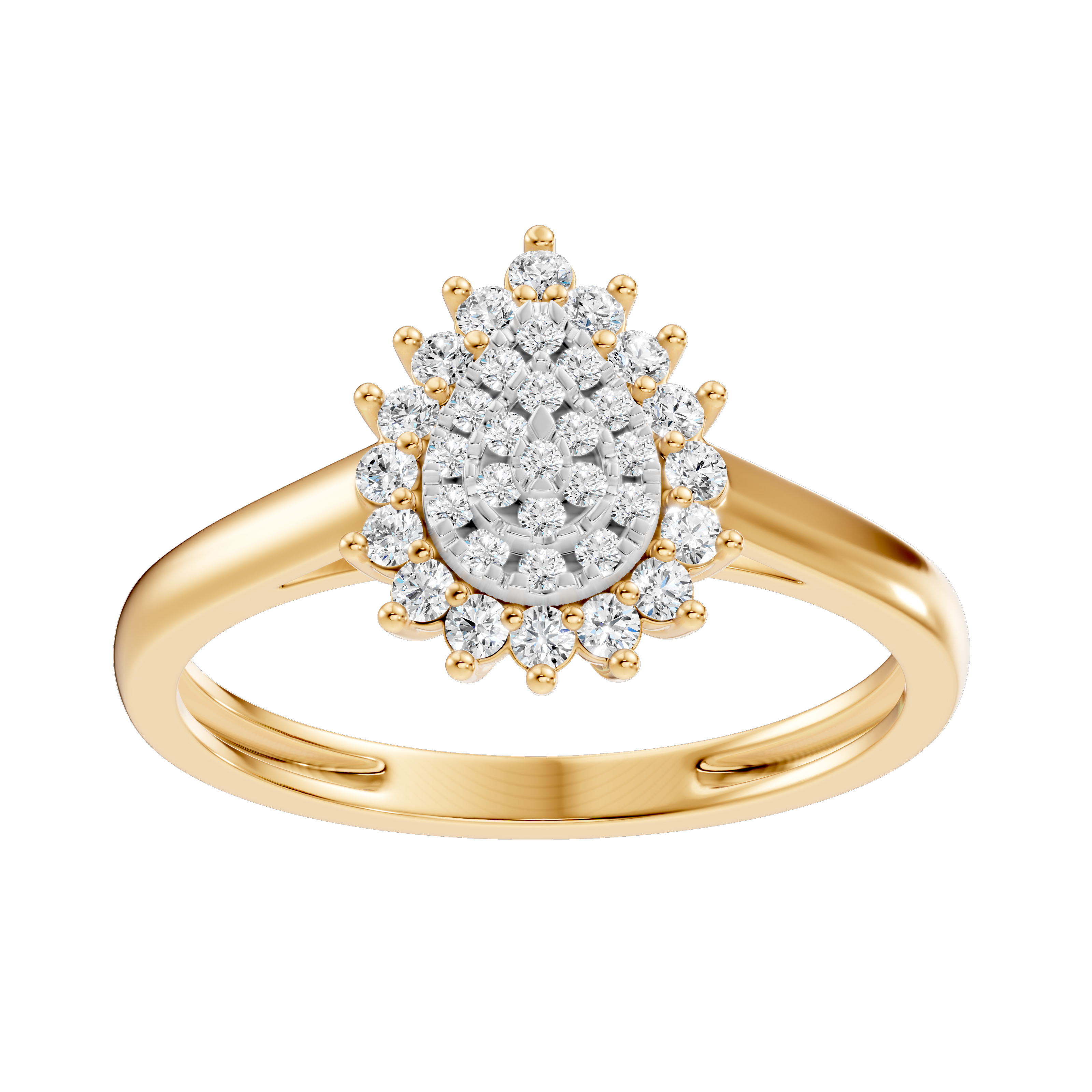 Pear shape illusion plate with diamond halo Ring