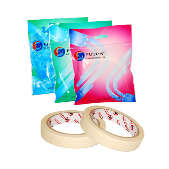 This is a reel of masking tape made of quality wrinkle paper. It is coated with special pressure sensitive adhesive material for high viscosity. The masking tape is widely used in spray paint, shoe and electronic industries.