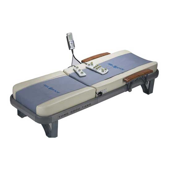 Presented here is a massage bed designed with a natural heated jade massage function. It comes with an LCD display screen and a remote controller for easy reading and controlling. It is also equipped with manual and automatic modes.