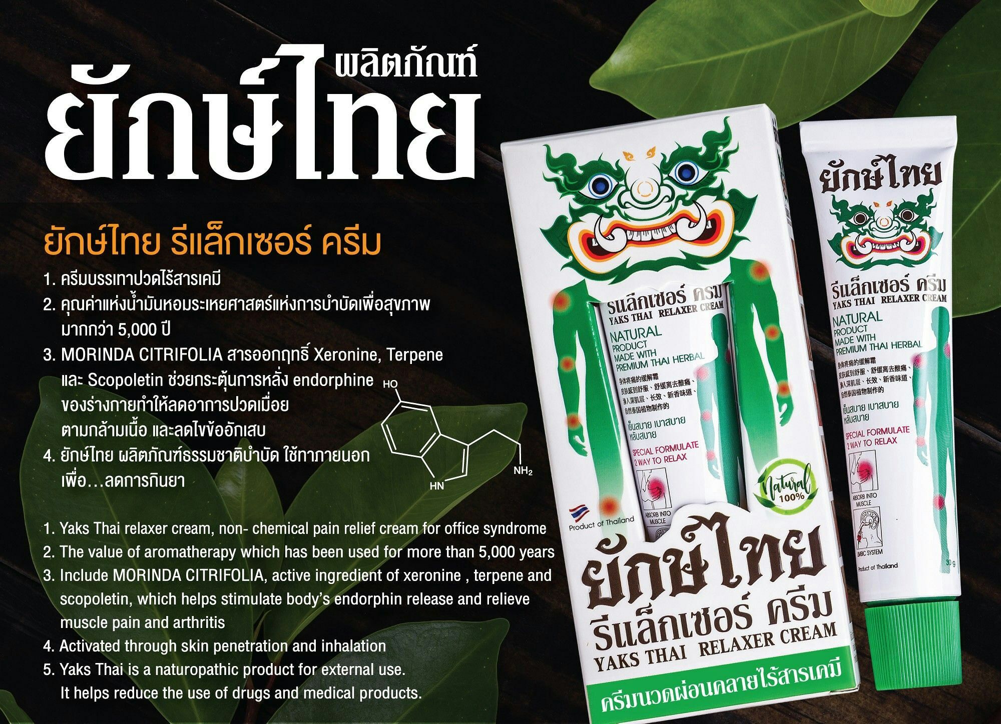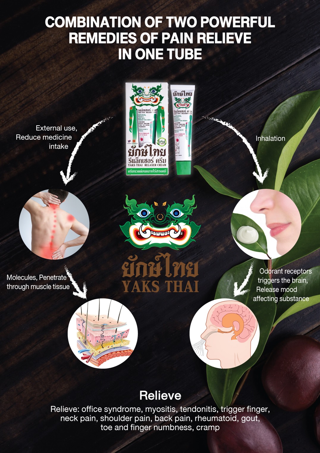 Say goodbye to the office syndrome that you have suffered for a long time with this Yaks Thai relaxer cream. Formulated with 100% natural ingredients, this massage cream instantly adds a sense of relief to your painful muscles and keeps you away from the unpleasant neck and shoulder pain, effortlessly soothing your fatigued body in a flash.