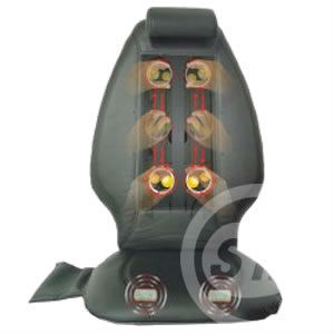 - One roller set containing four massage heads provides a deep-tissue back massage.