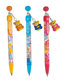 - Design: Cutie mechanical pencil with round topper, and attached with a plastic figurine.