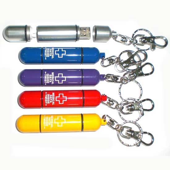 These USB drives feature a humorous design. Each drive features a tube shape with one end as the USB plug. The middle part offers a space for keeping medicine. The pragmatic USB drives make ideal corporate gifts.