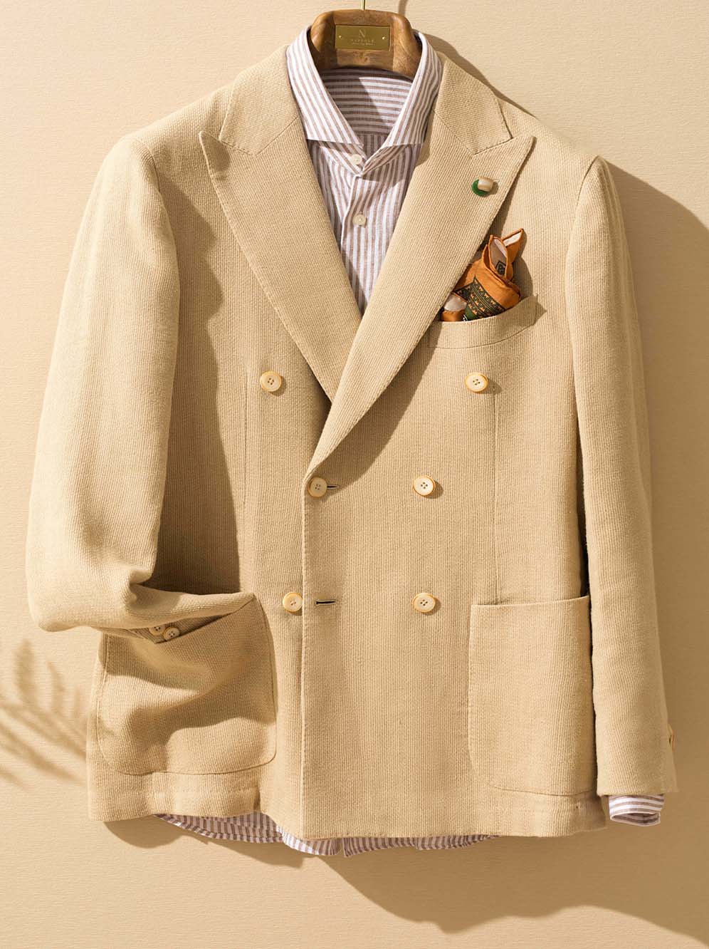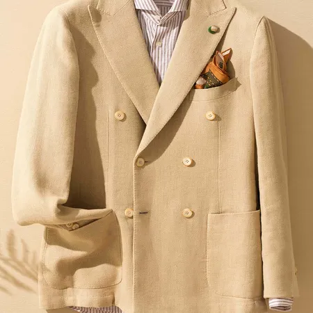 This double-breasted blazer effortlessly complements any outfit. With its unlined design and tailored fit, it is versatile and suitable for various styles and occasions.