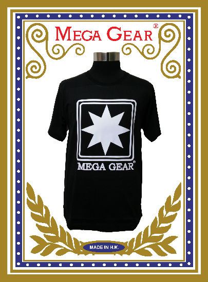 Black t-shirt in Mega Gear (Hong Kong new clothing band).