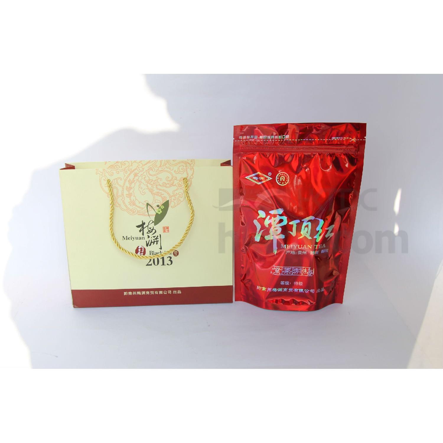 {black tea - tam red (tam red zipper bag)} : the raw material for tam red fresh leaf, from MeiYuan organic tea plantation base, growth at an altitude of 1453 meters, the production technology for the withering Rolling fermentation drying process, the appearance of tight fine even heavier solid (jin slightly curved, colour and lustre is uniform oil moisten, well-spaced Golden yellow and black, do not contain inclusions, good clarity, aroma strange Hot soup smell sweet, elegant and peaceful cold soup Shang segong is golden bright, fresh sweet taste great, and tender leaves red Plateau regional quality characteristics of black tea .