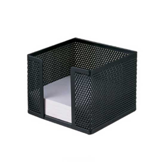 Shown here is a memo holder in a cubic shape for easy storage. It comes with hollow-mesh construction to convey a stylish touch. This memo holder is ideal to put on a working desk in offices or houses.