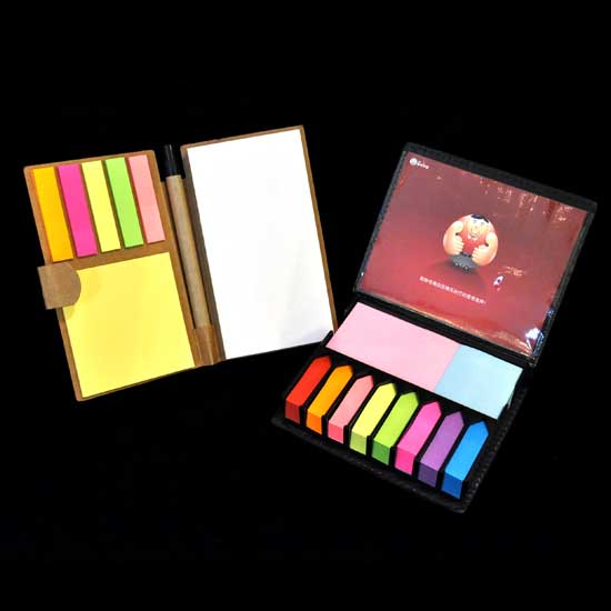 This is a set of memo pads in various shapes and colors. The pads are packed with a cover for users to take notes anytime. The memo pads are made of recycled paper to reduce harm caused to the environment.