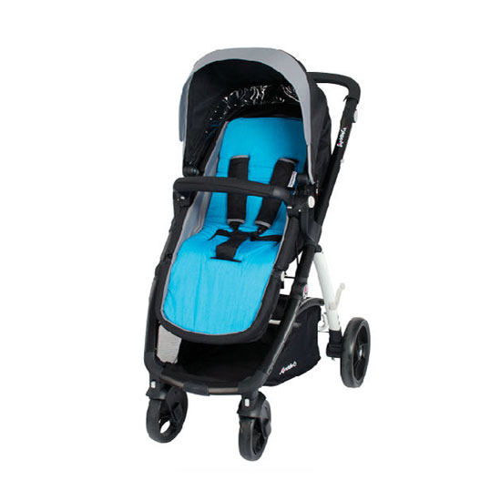 The sky-blue "Comfi-Cush" stroller liner ensures your baby is seated in an anatomical position ideal for musculoskeletal development. It is fitted with your baby's body shape and provides enhanced comfort and support. It is designed with great versatility and is compatible with various kinds of baby pushchairs.