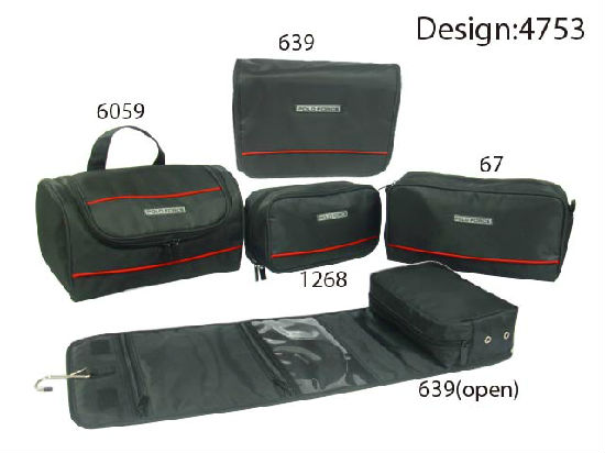 One hanging toiletry bag with zipped compartments and hanging hook.