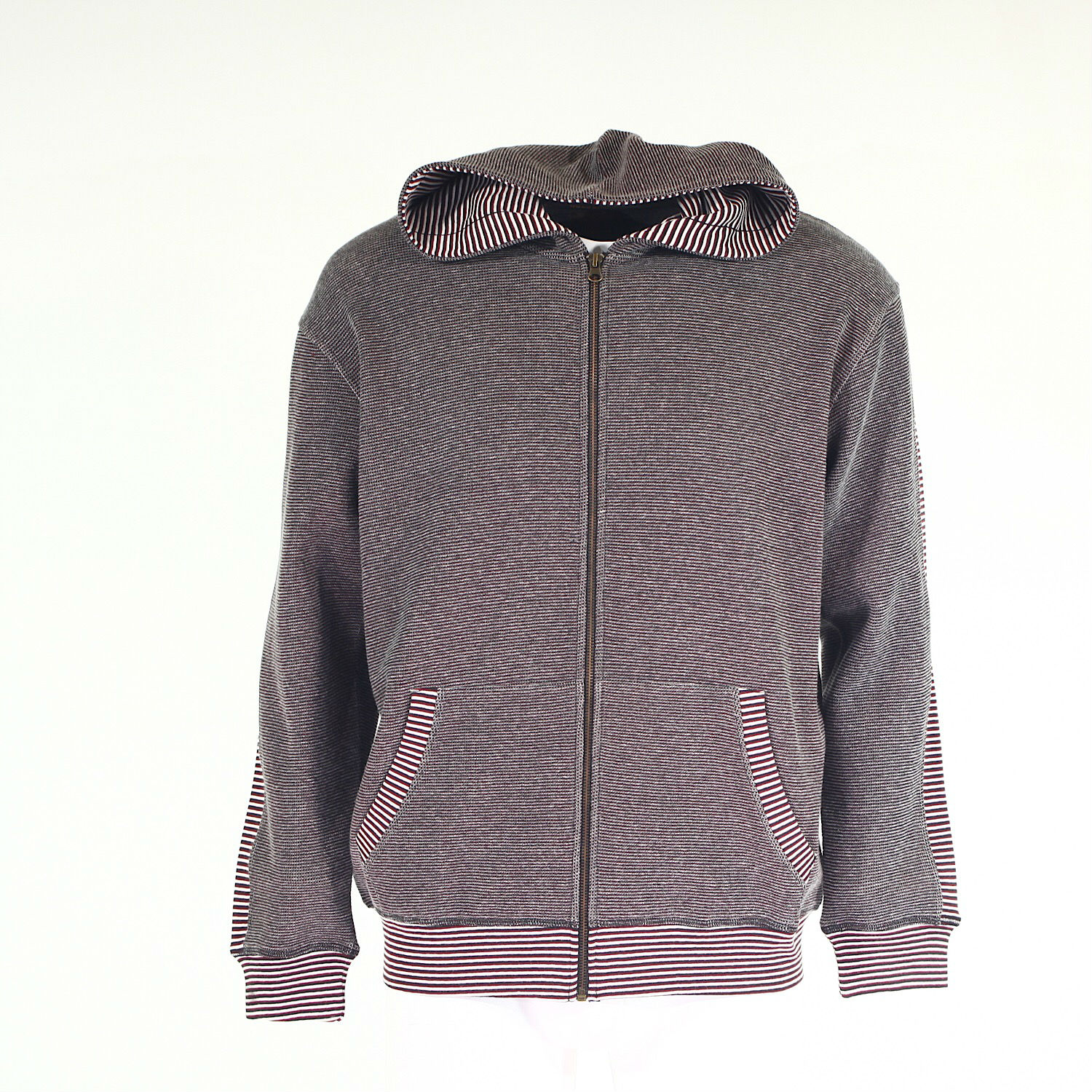 The pictured men’s hoodie comes in a long sleeved design and is made of grindle thermal fabric. It has front zippered closure and has two waist pockets on the side. This men’s hoodie is embellished with allover stripes and is warm and comfortable to wear.