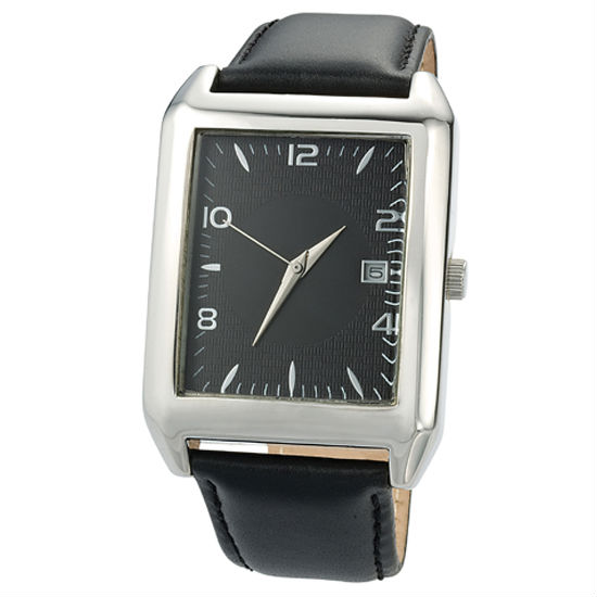Show off your inimitable style with this silver tone alloy case watch with IPS plating. This square face watch has a black structural dial with silver index hourly markers with Arabic numeral markers at 2, 4, 8, 10 and 12H. It also features 3 silver tone hands, a small date window at 3 o'clock position, and a silver tone crown. The black genuine leather strap has a tone-on-tone stitch detailing. This 3ATM water resistance watch uses the Japan 3 hands date movement. Team this bold timepiece with your weekend casuals to heat things up.