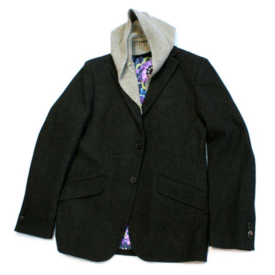 Highlighted is a men's blazer in a hooded design for a distinctive style. It comes with lapels, showcasing a smart-casual design for easy mix-and-match. The patterned lining adds style to the blazer.