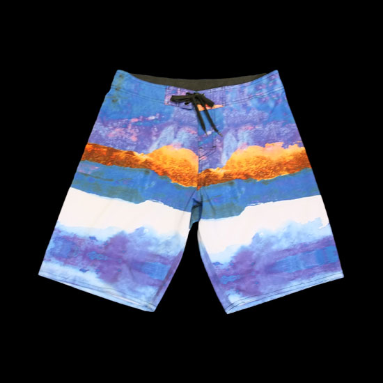 This is a pair of men's board shorts with an eye-catching appearance. It is printed with charming patterns in bright colors. The high-quality polyester fabric promises enhanced robustness.