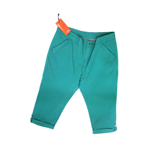 These bright green men's pants feature a half-length and drop-crotch design. The quality pants are made of comfortable and lightweight cotton fabric. The hidden zipper and rolled hemline finish the style of these fashion-forward pants.