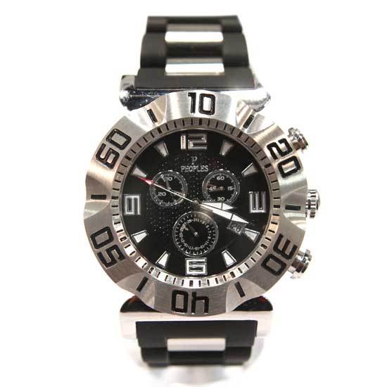 The chronograph watch designed for men is fitted with a Swiss movement for operational efficiency. Its rugged stainless steel case is connected with rubber straps that offer a comfy wearing experience. This watch also comes with three utility sub-dials and clear time display.