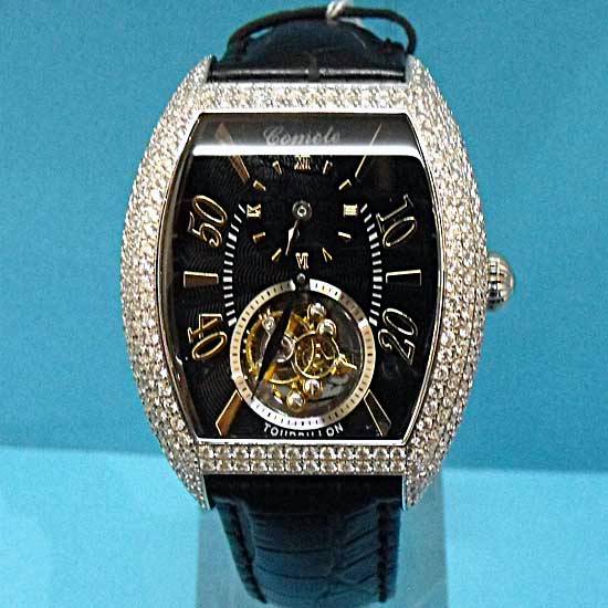 The stunning diamond watch boasts a tonneau shape with a skeleton window that shows the astonishing mechanism. The brilliant diamonds adorn the bezel for incredible sparkle. Designed to always tell time with elegance, this diamond timepiece makes a fashionable addition to your wardrobe.