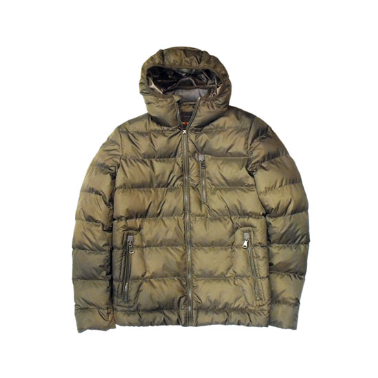 This hooded down coat is made of quality, soft material. It comes in a special fawn-green color for a stylish look. Cuddly and cozy, this down coat keeps you warm in the chilly winter.