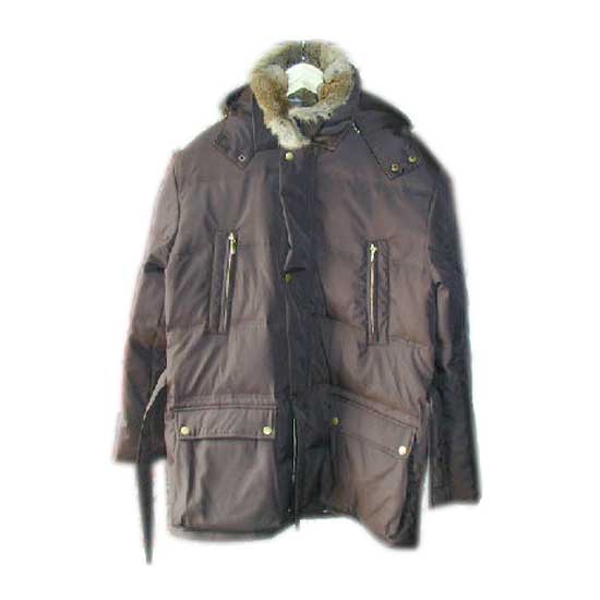 This men’s down jacket comes in dark brown with a fur collar. The 70/30 duck down filling keeps you blissfully warm. The front is designed with two vertical zipper pockets and two big snap-button pockets for extra functionality.