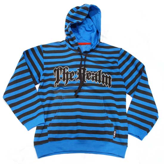 The men's sweat shirt showcases fine stripe patterns with letter prints on the front. It comes with a drawstring hood and two pockets. This sweat shirt is ideal for casual occasions.