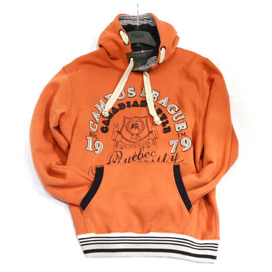 This men's hoodie features a bright orange color. The stylish hoodie is designed with a bold logo on the front. The chic and comfortable hoodie is suitable to wear on any casual occasion.