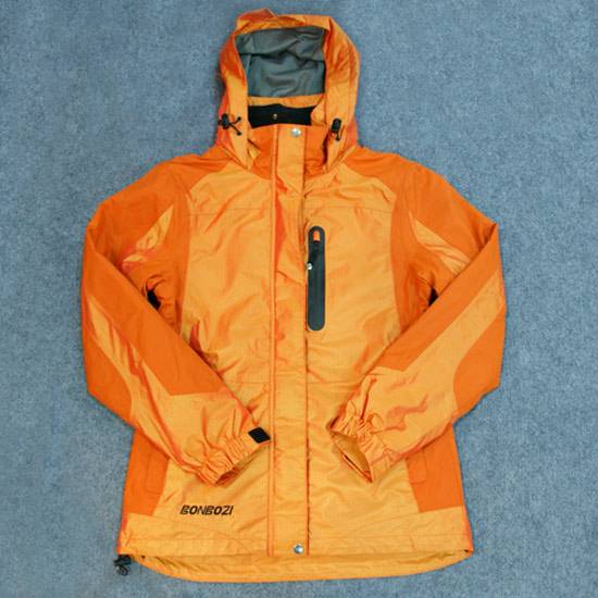 This is an orange coloured sport jacket for men's use. The sport jacket is waterproof, windproof and is made of 100% nylon which is breathable and provides extra comfort.