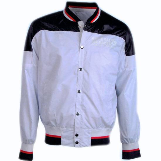 The men's jacket touts an appearance of a baseball jacket. The banded cuffs and bottom hem promise a customized fit. Made of quality material, this long-sleeve jacket makes a must-have fashionable piece for your cool-weather wardrobe.