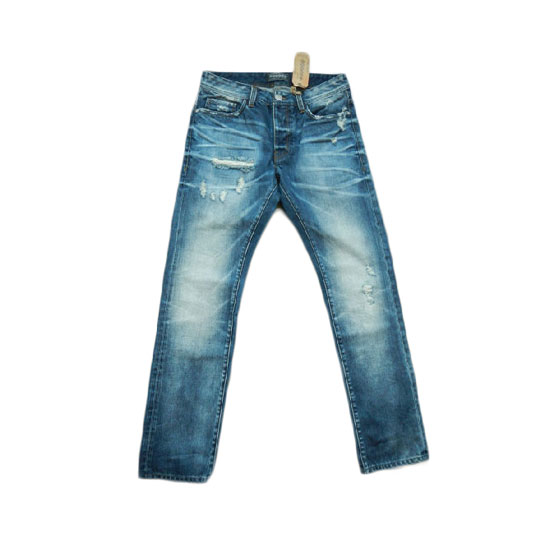 This is a pair of men’s jeans made of quality cotton material in blue. The washed effect and frayed design make this pair of jeans look trendy and fashionable. It goes well with a T-shirt for a casual weekend look.
