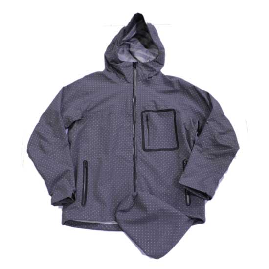 This gray men’s lamination jacket features subtle dotted patterns. The breast and side zipper pockets on the front lend extra style to the windproof jacket. The versatile jacket is finished with a zipper closure and a drawstring hood.