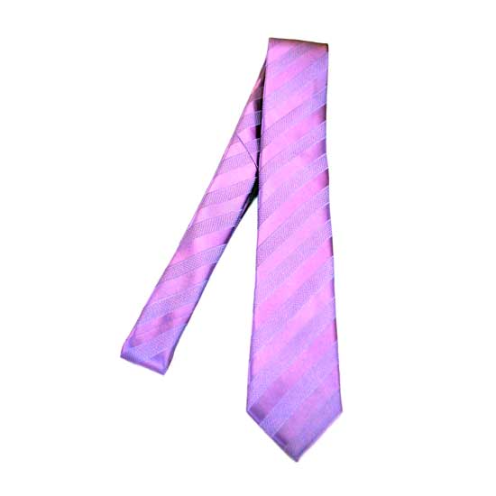 This is a men's necktie that is made of 100% polyester to give a natural texture. It is accented with vivid purple striped patterns for added glamor. Gentlemen will surely look modish with this elegant tie.