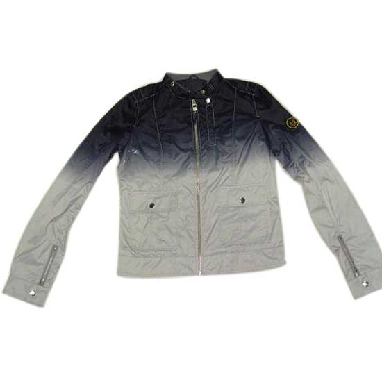 The men's nylon jacket features a front zipper closure with two button pockets. It showcases full stitching throughout with zippers and badge on the cuffs for a decorative touch. Update your wardrobe with this trendy jacket.