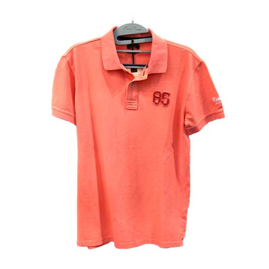 This men’s pique polo shirt comes in a captivating peach tone, grabbing people’s attention effortlessly. The embroidered number “85” on the left chest lends it extra style. Made of 100% cotton, this eye-catching polo shirt promises optimum wearing comfort.