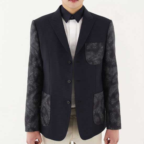 Showcased is a men's suit jacket with delicate printed patterns on the long sleeves and pockets. The handsome suit jacket comes with two flap pockets on both sides and a chest pocket for carrying your handkerchief. This decent blazer makes a stylish addition to your formal wardrobe.