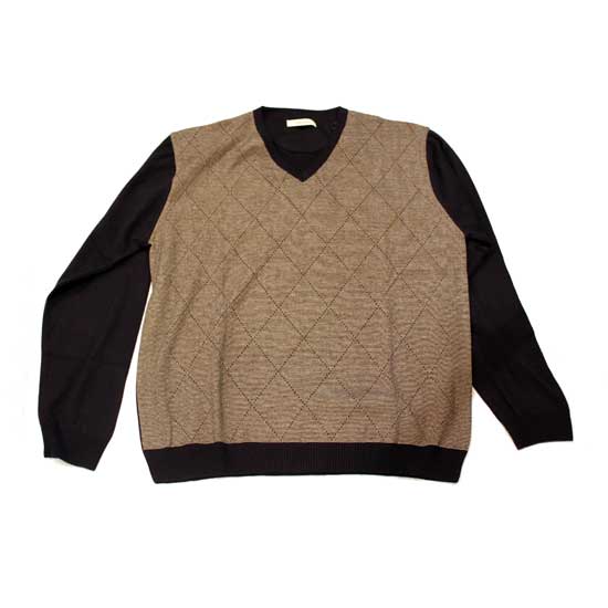 This men’s pullover is made 50% of cotton and 50% of acrylic. It comes with checked patterns on the front and black-colored long sleeves. This men’s pullover is an ideal choice for casual wear.