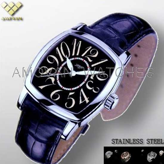The men's quartz analog watch features a square stainless steel case. The big Arabic-numeral hour markers fill up the black dial to give out a contemporary touch. Keep up with your busy lifestyle with this modern quartz analog watch.
