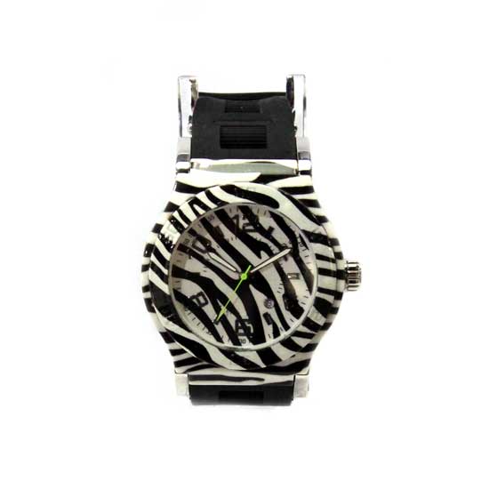 This men’s quartz analog watch is characterized by its zebra-print case. The round dial is ingeniously designed with Arabic numerals and stick indices alternately for a chic touch. The date display window lends extra functionality.