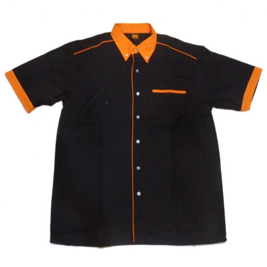 This stylish men's black shirt is highlighted by its orange collar and sleeve hem. Short sleeves, front button-closure, and a curvy waistline complete this edgy shirt. This shirt can give you a fresh and young looking in the summer.