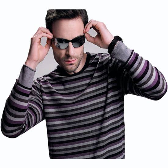 The featured jacket comes with black, purple and gray stripes. It is dark in color and is easy to mix and match with different pants. The sweater is soft and comfortable to wear.