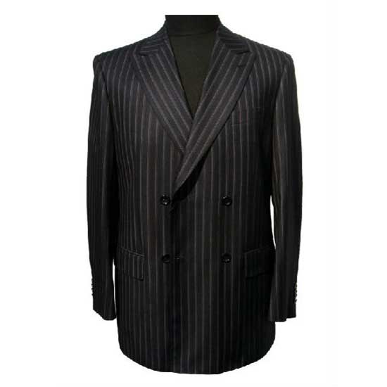 Showcased is a handsome suit jacket in cool black finish with striped design, giving a professional look. The double-breasted design offers distinction and individuality. Always look your best with this stylish suit coat.