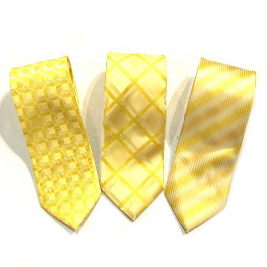 The ties are designed in a striped, checked and grid square pattern respectively.