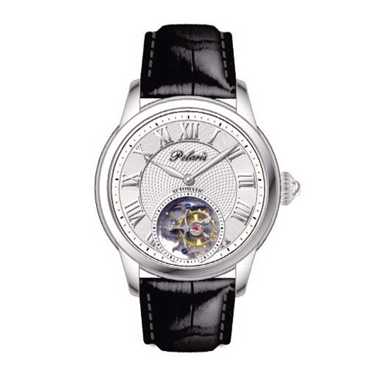 This men's watch comes in a delicately made watch strap in black. The Roman numeral display is classical and majestic. The window in the middle of the display allows you to see the inner movements clearly.